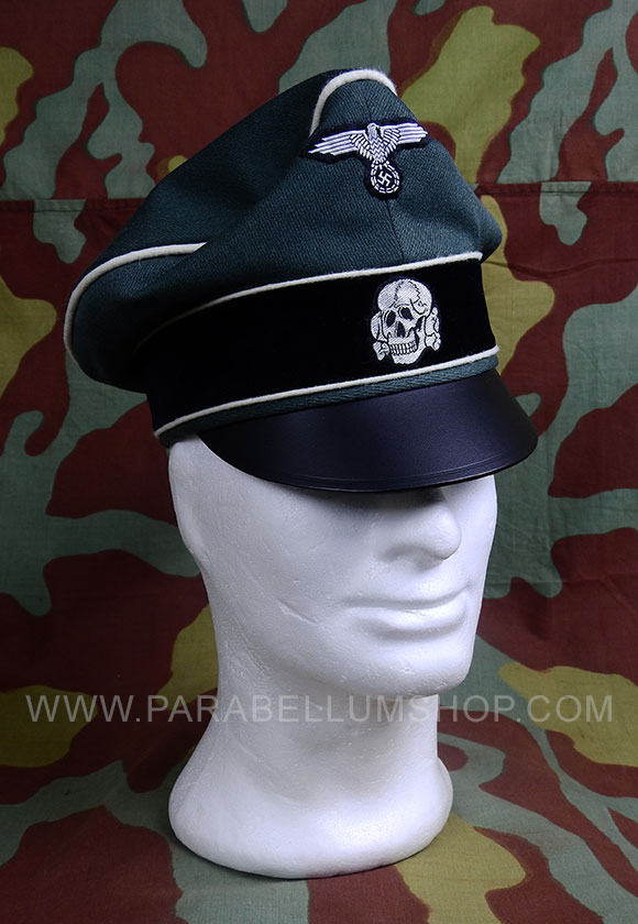 Denominato come cappello da ufficiale vecchio tipo, a prima vista aveva l’aspetto dello schirmmutze, il cappello con visiera, ma ad una più approfondita analisi ne differiva per vari aspetti. Non era provvisto del cordone argentato, la calotta si presentava afflosciata per mancanza di un sistema di nervatura. La fascia centrale in panno di colore nero ospitava il teschio emblema delle SS e nella parte superiore l’aquila delle SS mentre la visiera nella classica formula in cuoio nero flessibile. Sebbene il suo utilizzo avrebbe dovuto cessare con il 1° Aprile 1942, la sua praticità e popolarità protrasse l’uso fino al termine del conflitto.