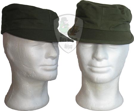 Replica del field cap M43, il cappello da campo americano dello US Army. Di colore verde oliva, è dotato di un copri orecchie piegato internamente quando non utilizzato.