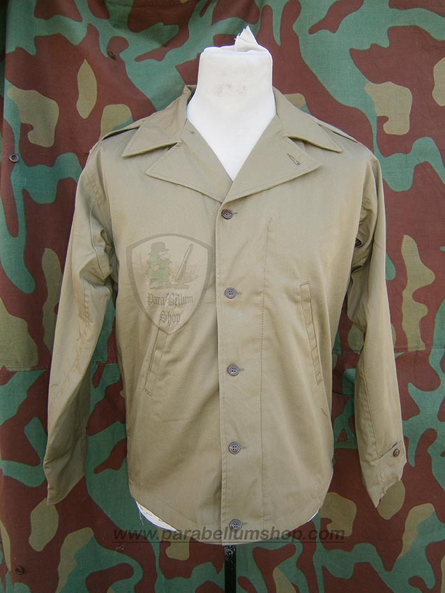 Riproduzione della Field Jacket M41, la giacca da campo in cotone utilizzata dalla dell’esercito degli Stati Uniti d’America a partire dal 1941 ed impiegata fino alla fine della Seconda Guerra Mondiale. Chiusa anteriormente da una cerniera e a sua volta nascosta da una chiusura con bottoni a pressione, ha due tasche a taglio diagonale sui lati. Molto comoda e semplice, era utilizzata da tutti i gradi e costituiva elemento base dell’uniforme da combattimento americana.