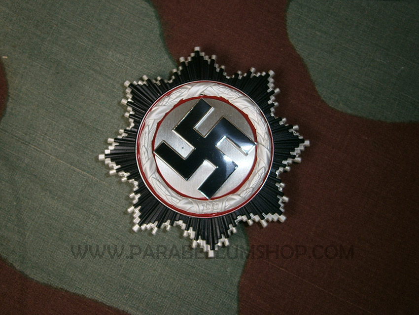 Finest quality reproduction of the German Cross in Silver, Kreigsorder Des Deutschen Kreuzen, created on 28 September 1941 by Adolf Hitler also pushed by the campaign in the East going on. The cross was intended to reward the soldiers who had distinguished themselves by value and courage on the battlefield being the protagonists of actions that were far more deserving than the Iron Cross Ist class but at the same time were not enough for a Knight Cross of the Iron Cross. The assignment could take place for each ranks, troops, NCO and officer, previous requirement was to already be in possession of the Iron Cross of I ^ cl and II ^ cl. Also in the reconfirmation version of the First World War. The demonstration on the battlefield of exceptional command of the troops was another reason for assignment. A decoration that was separate from the Knight Cross and which could also be conferred upon having already received such decoration.