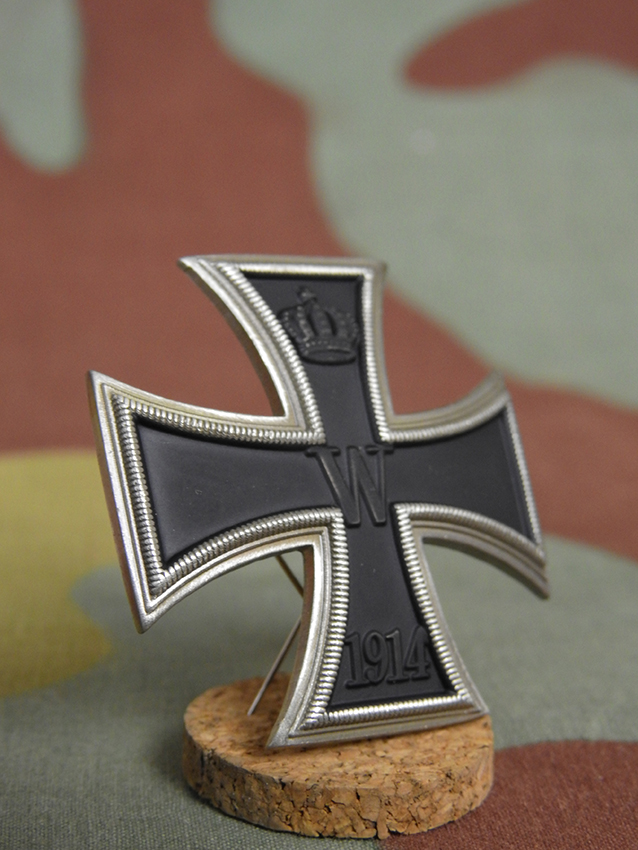 Very nice reproduction of German silver Iron Cross first class reintroduced by Kaiser Wilhelm II in August 5, 1914 for each rank and grade of the Imperial German Army during the First World War and also worn in World War II by veterans recruited in the German Army. The convex version was made by jewelry with fine manufacture and most appreciate by officer for its shape. The award of the Iron Cross I cl. was resulting in heroic actions, demonstrations of bravery or leadership. During the Second World War, in the case of award of the same decoration, was give a special badge of reappointment and not a new Iron Cross. The cross was applied on the left side of the tunic over on top of each other decoration.