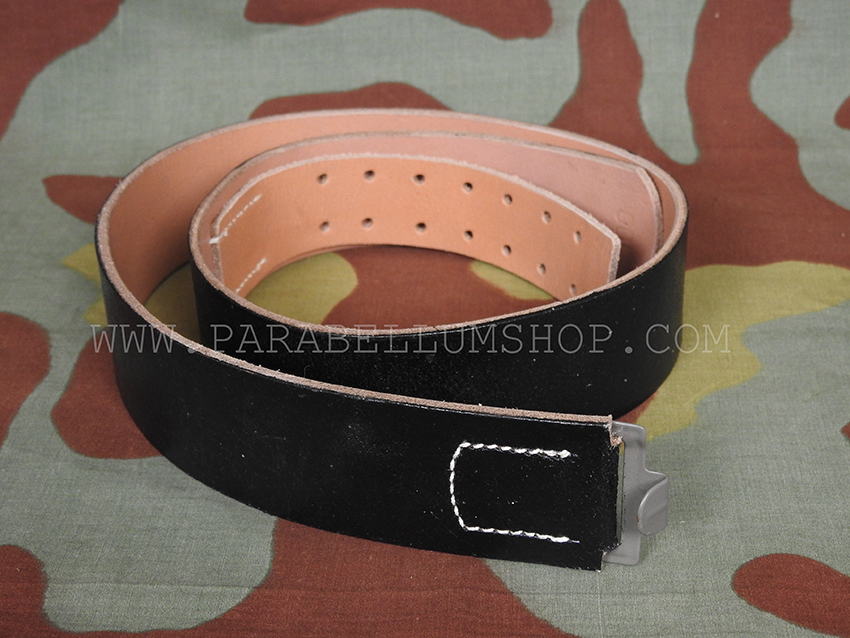 Best reproduction of the belt used during the Second World War in the German army to support all the equipment together with the suspenders. The model in black leather was typically used in the army, in the navy (Kriegsmarine), special forces and para-military corps, later also the aviation to rationalize the productions. The German belt had a height of 4.4 cm and was completed with its specific buckle depending on the corps. The attachment hook that will be made of aluminum in the pre-war period will become steel in the war time, and colored in gray. An internal tongue made it possible to adjust the length by sliding the buckle, however they were made in different lengths.