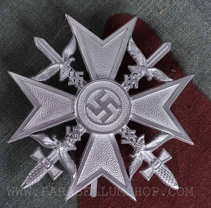 Reproduction of the German decoration instituted by Adolf Hitler on April 14, 1939 to tribute to the veteran volunteers for the Spanish civil war and gathered in the famous Legion Condor sent to the aid of General Franco in his attempted coup. Since the expeditionary corp was not officially referable to the German government, no decoration was established before or during the hostilities. A model without swords was reserved for non-combatants.
