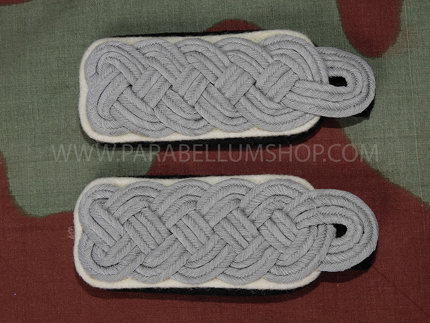 Reproduction of Major infantry shoulder board, Sturmbannführer, of Waffen SS of the Wehrmacht, characterized by the under-cloth in black and braid metal wire. Complete with the under shoulder strap with buttonhole for fix on feldbluse.