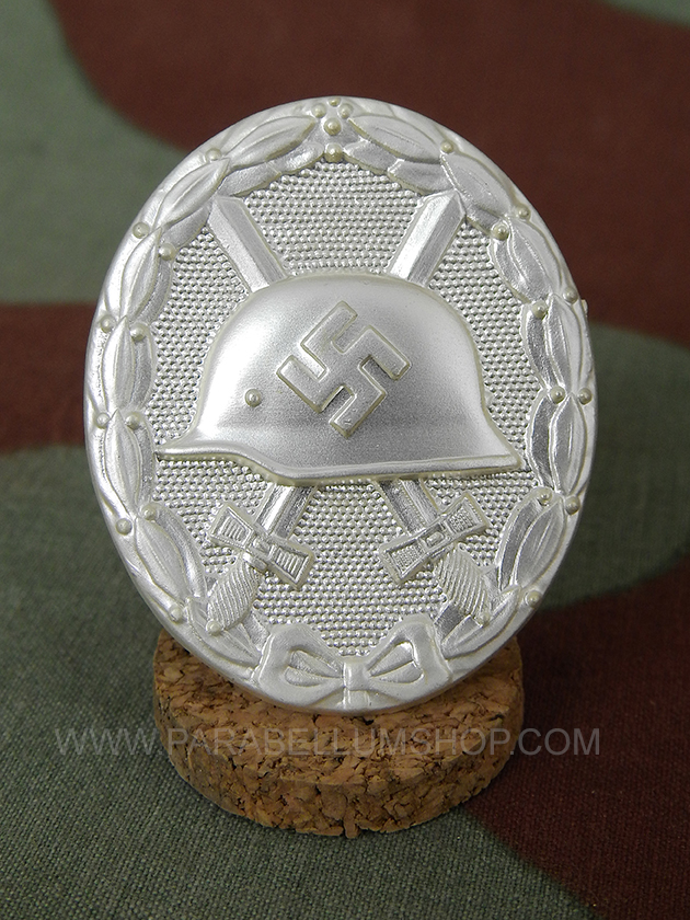 Reproduction high-quality wound badge in silver color grade, granted to all members of the Wehrmacht, starting from September 1, 1939, were injured. Based on the model dating back to 1918 was awarded to members of the Heer, Luftwaffe, and Waffen SS Kriegsmarine.
